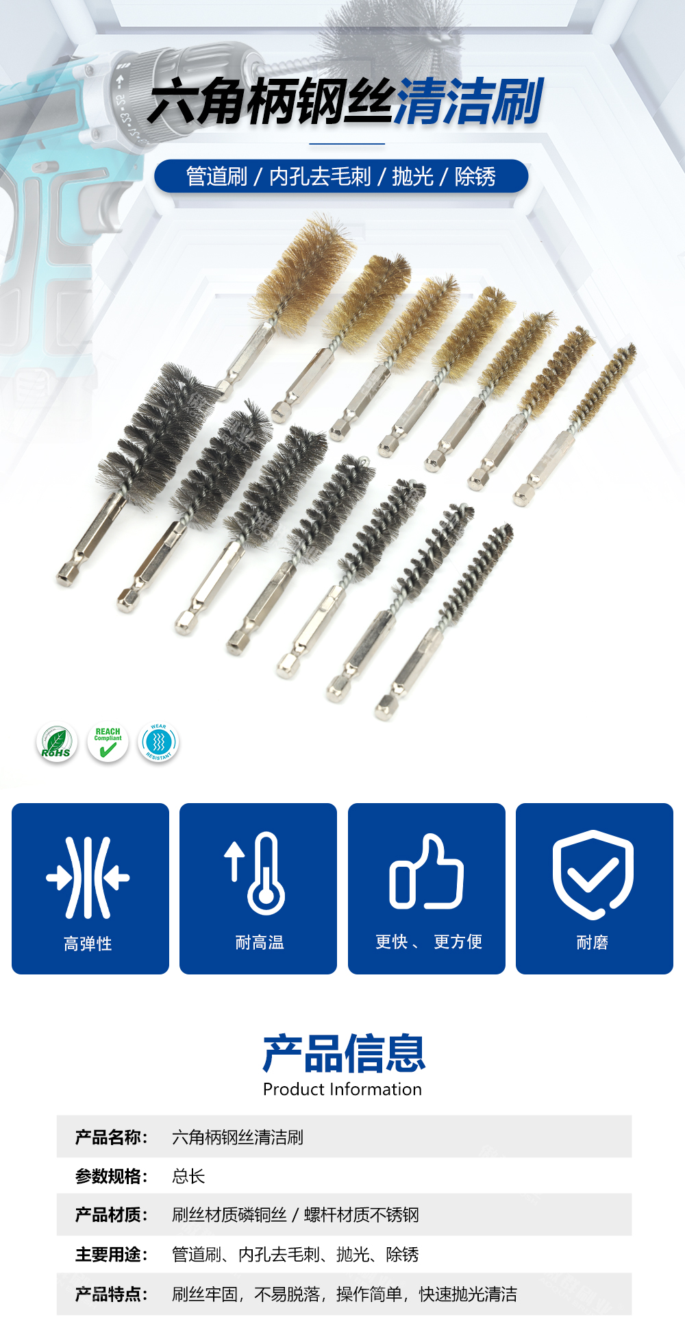 - 功能/用途:管道刷、內孔去毛刺、拋光、除銹