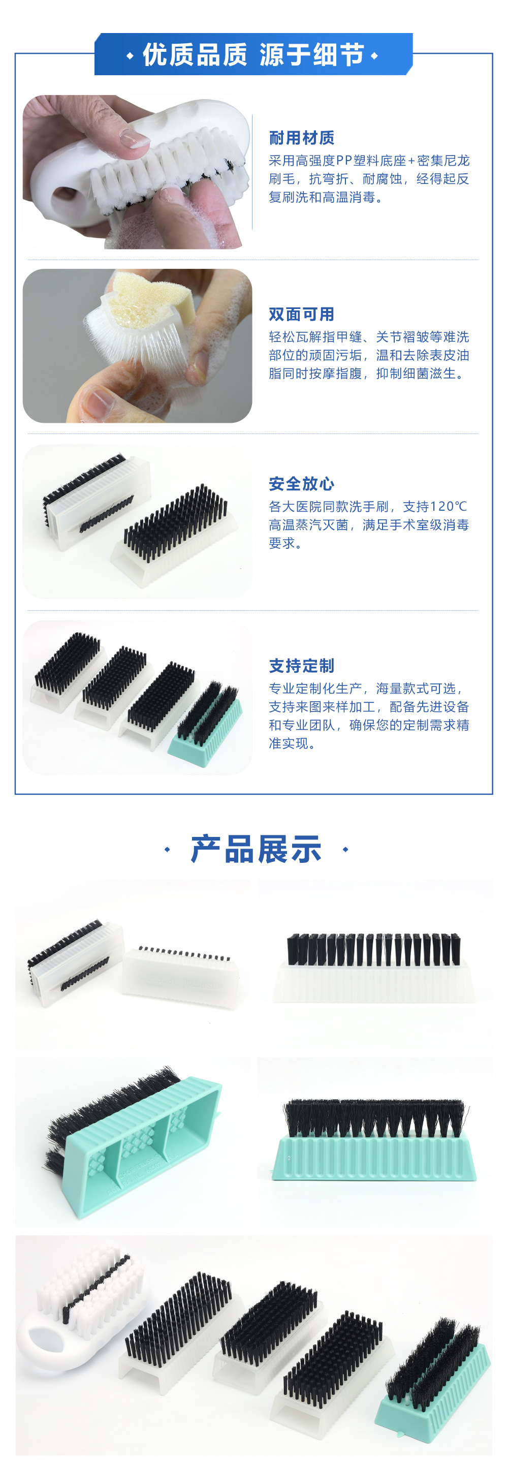 - 功能/用途:各大醫院同款洗手刷,支持120℃C高溫蒸汽滅菌,滿足手術室級消毒要求。